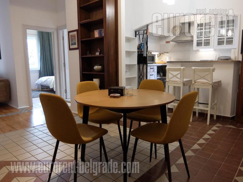 Lep stan u srcu Vračara u mirnoj ulici. Na pet minuta šetnje od Slavije, Hrama Svetog Save, Kalenić pijace. Posleratna, starija zgrada sa lepim ulazom, bez lifta, malo stanova. Stan se nalazi na prvom spratu i funkcionalne je strukture. Salonac sa dnevnim boravkom i trpezarijom iz jedne celine, pultom, izdvojenom kuhinjom, dve sobe i kupatilom sa tušem. PVC stolarija, renovirano kupatilo, pod je kombinacija parketa i keramike. Kompletno namešten i vrlo udoban za život para ili porodice.