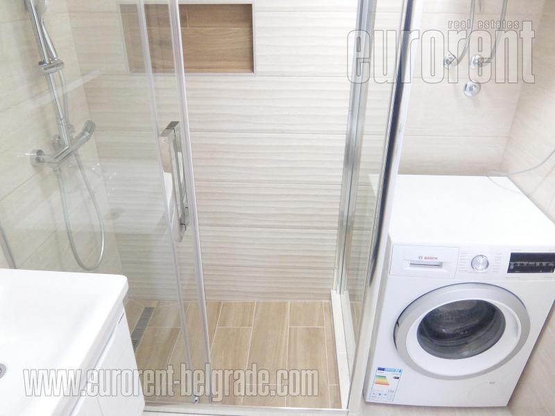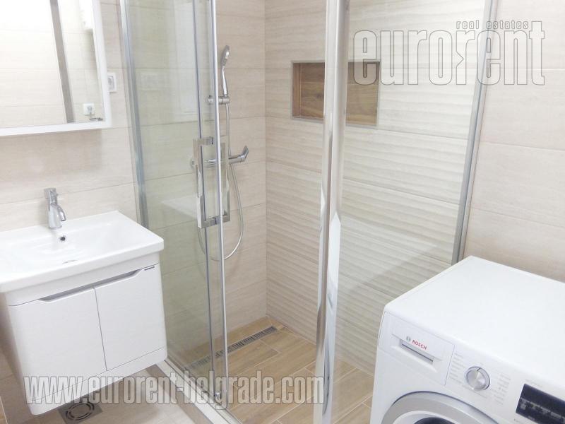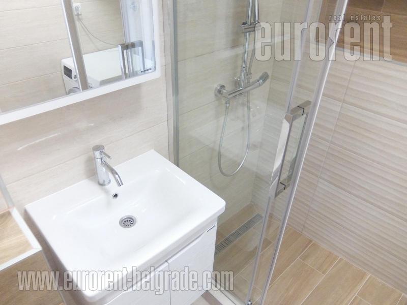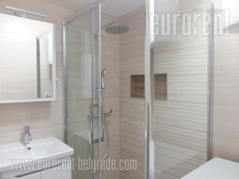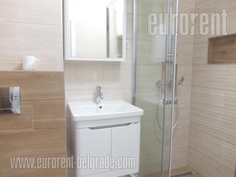 Excellent apartment in immediate vicinity of New Belgrade arena in block 25. Location is excellently connected with all parts of the city, and highway provides easy connection to the airport. The building is older with an elevator and garage, while apartment is housed on the fourth floor. Hallway leads to all rooms: living room, separate kitchen with a dining area and further to the large terrace which spreads along the whole apartment. In the sleeping block contains two rooms, one of which is for children, bathroom with shower cabin and toilet. Interior is fully renovated, with new floors, built in appliances, kitchen cupboards, it is painted and air-conditioned. Garage is at disposal on the ground floor for additional cost. Suitable both for business premise or comfortable life.