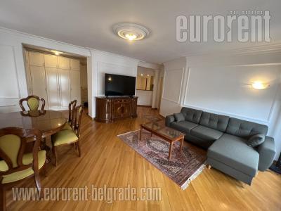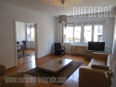Apartment is housed in upper Dorcol, which is part of narrow city center. Street is popular for large number of cafes, restaurants and bars placed in it, and in walking distance from Knez Mihailova street. Extremely suitable for living, for people who wants to be in center of city happenings, since there are lot of amenities available in close range. Building is 15 years old, and nicely blended into surrounding area. Apartment is renovated, decorated and available without furniture, so it could be used for office space too. Rooms have rectangular shape and there are total four rooms, kitchen is fully furnished and separated, and two bathrooms are at disposal. Loggia fitted with glass is equipped with sitting set, which gives nice opportunity for relaxations.