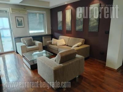 Beautiful apartment placed in the heart of Vracar in busy zone of the city. This location is one of most desirable places to live in it and it is rich in amenities for comfortable life. At walking distance there are numerous restaurants and coffee shops, stores with variety of goods offer, as well as the well known green market Kalenic. The apartment is spacious, with functional layout and nicely arranged. It consists of centrally positioned living room which is interconnected with dining room and kitchen with a kitchen counter. Two terraces, one looking towards the yard and the other towards the street are at disposal. Master bedroom is furnished with king size bed and has a bathroom with a shower cabin. The apartment is furnished in minimalist, but modern manner. Interior has interesting details, plaster decorations on the ceilings, and halogen lighting. One garage spot in the basement is reserved for the future tenant. Suitable for modern family life.