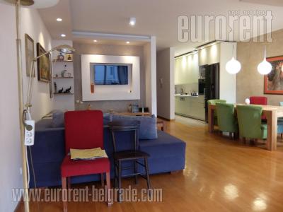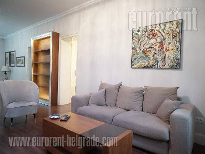 Attractive apartment located in a quiet street in Vracar, in the vicinity of St. Sava Temple. It is housed on the third floor of a relatively new building with an elevator. The apartment features a central entrance hallway which connects all rooms. There is a living room connected to kitchen equipped with built in appliances, two bedrooms, a terrace, as well as a bathroom with a shower cabin and washing machine. Interior is equipped with a combination of modern and classical furniture. Suitable for a couple or a smaller family.