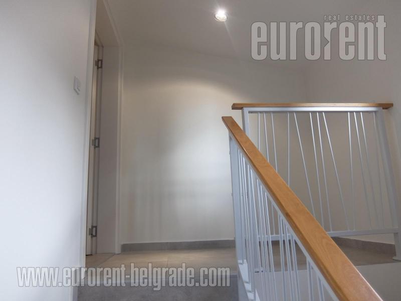 Excellent, new house situated in quiet location in Senjak. Slightly secluded from the street, placed in the yard providing additional peace from disturbing traffic. House is reachable through the first yard where another building is located. It has small, private yard of 50 m2, and spreads over three levels. The ground floor consists of a living room interconnected with a kitchen and dining room, two smaller bedrooms, a bathroom with a shower cabin and a guest toilet. The first floor has the same structure, but the layout is like in the mirror. On the upper level, the living room leads to a very nice and comfortable terrace. The living room on the lower floor has access to the terrace in the yard. There is another room in the basement. The interior of the house is new. The floors are covered with tiles under which underfloor heating is installed. Both kitchens are equipped with elements and appliances, the rooms are equipped with closets. There are washing machines in both bathrooms. A garage for a small or medium-sized vehicle is placed in the yard. It is possible to park another vehicle in front of the garage. The house is excellent for comfortable life and also for business activities.