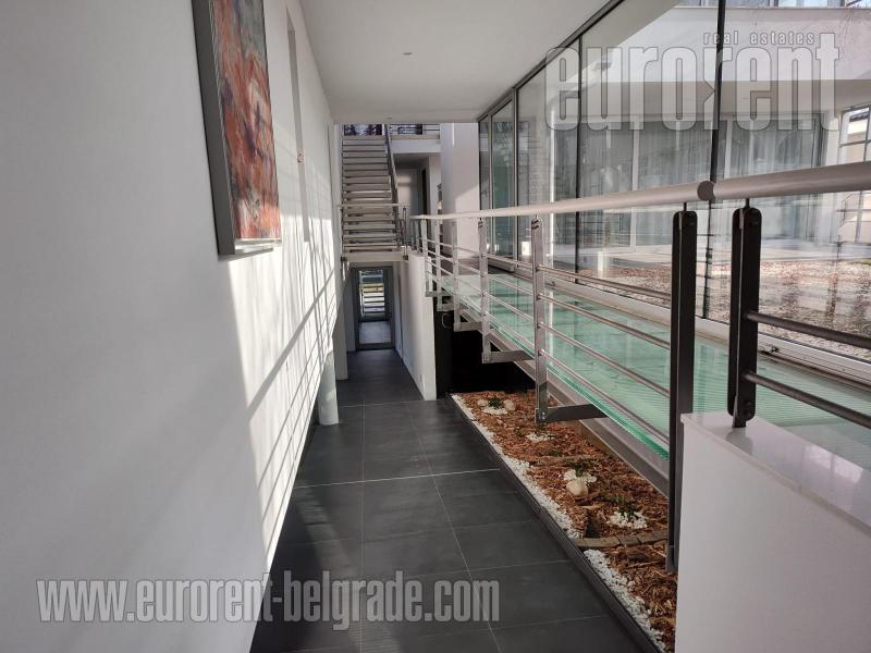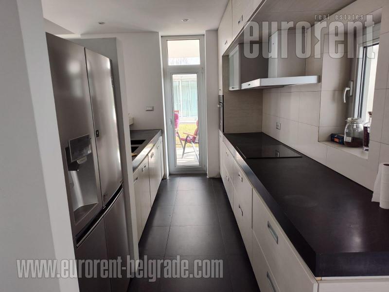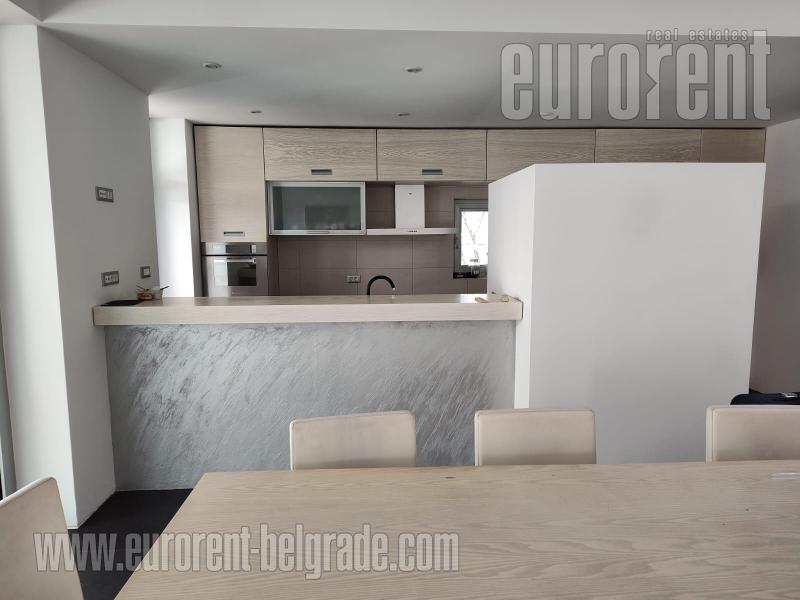 An attractive and modern house on the outskirts of the city, in a pleasant environment of family buildings. An excellent connection with the highway at a distance of 6.5 km from the Mostar interchange, enables easy access to city amenities with conditions for a quiet, comfortable, intimate family life. The house is functional, spacious and energy efficient, self standing on a plot of 1800 m2. The facility is fenced and under video surveillance. The yard consists of an paved parking space in front of the garage for 6 vehicles, while the garage is for two. The house spreads over three levels and its dimensions follow the slope of the plot, so that the ground floor and the basement have access to the grass. The fenced yard is entered through a covered pedestrian gate equipped with an intercom, cameras and sensor lights. The kitchen is open to the dining room, has direct access to the porch for dining and economic porch, as well as a direct connection to the pantry and laundry room. From the spacious dining room there is a view of the green atrium with a large birch tree in the middle. The living room with a fireplace has a height of 5.7 m and above it floats a gallery from which you can access the three children's rooms and the bathroom on the first floor. The children's rooms have access to a spacious mutual terrace with a beautiful view. Behind the living room is the master bedroom area with a bathroom, wardrobe, study, terrace and a separate stair connection with a porch and further to the outdoor pool of 50m2. In the basement, below the living room and the master bedroom, there is a recreational area with bar and spa facilities connected to the barbecue on the porch in front of the pool. Excellently organized concept, equipped with new, modern furniture. There is underfloor and wall heating. The main part of the house has ceiling heating placed under the thermal insulation of the ceiling. The house is equipped with a system for central hot water preparation connected to the installation of solar collectors. The finishing of the building was done with top quality materials, and the space was additionally adapted to the needs of modern tenants. Ideal for families, who want peace and privacy, with a high level of comfort.