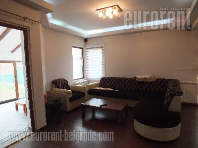 It is a detached house placed at the top of Gardos hill, not far from Zemun center. Surrounding includes family houses which provides peaceful and quiet neigbourhood. Uphill area where house is placed overlooks whole Zemun and river. House is fenced and there is one parking spot next to the entrance. Plot is in cascades, covered with bricks and with several green areas. One part of yard is under eaves and it could be used for relaxation or barbecue. House occupies three levels. First level has open plan living room with dining area and kitchen. It is equipped with good furniture and abundant with natural light. Kitchen are has direct access to yard. On a first floor there are three bedrooms, under slant roof or beams, which do not disturb functionality of space. These three rooms share one bathroom with a bathtub while separate restroom is on a ground floor. Coridor of a first floor has built-in closets. Basement area has small kitchen area/utility room, bathroom with a shower cabin and large room which is used for office. House provides peace and privacy, surrounded with greenery, and yet within a walking distance to commercial facilities.
