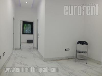 Office space is placed within older office building, in a commercial and residential zone of New Belgrade. Excellent link to different parts of town through wide boulevards that enables good traffic flow. Public transport lines goes near this space and stop for Beo voz (train) is only 5 minutes away. Public parking is in front of building, and another one across it. Building has security service and maintenance service. It is located on first floor and it consists out of larger reception area (around 25 m2) going to two independent offices, kitchenette and restroom. It is equipped with office furniture. It has halogen lights, installed computer network and two air conditioners.