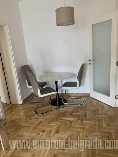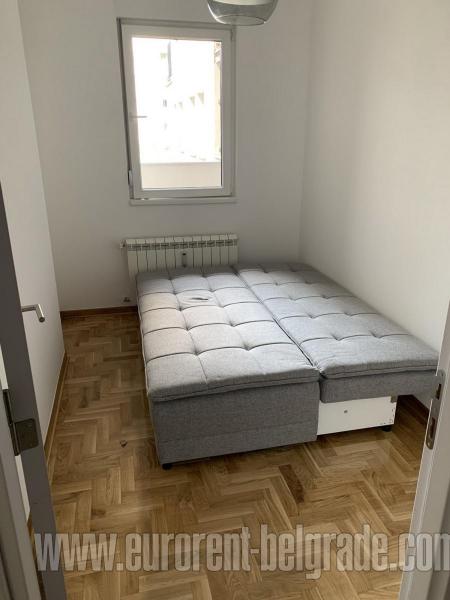 Stan u zgradi novije gradnje na Novom Beogradu u bloku 61. Trosoban po strukturi. Ima odvojenu kuhinju, dnevni boravak, dve spavaće sobe, terasu i kupatilo. Opremljen je novim nameštajem, vrlo komforan, dobre stukture. Pogodan za par ili manju porodicu.