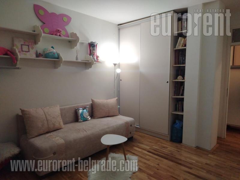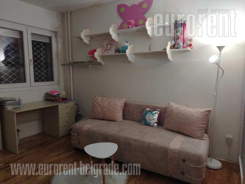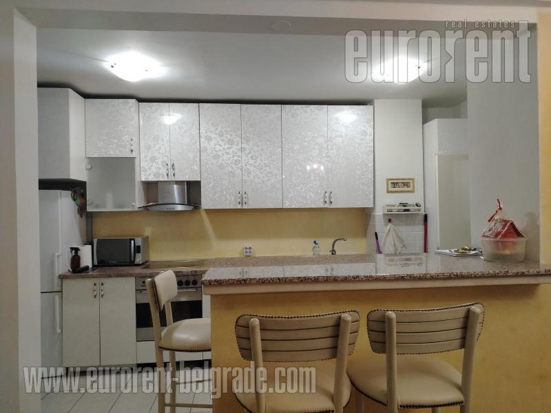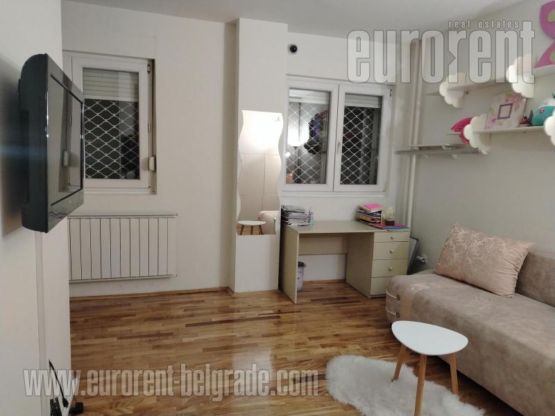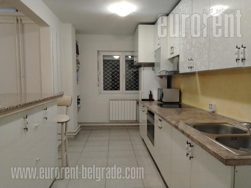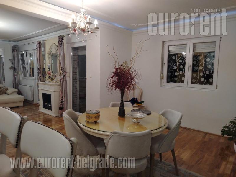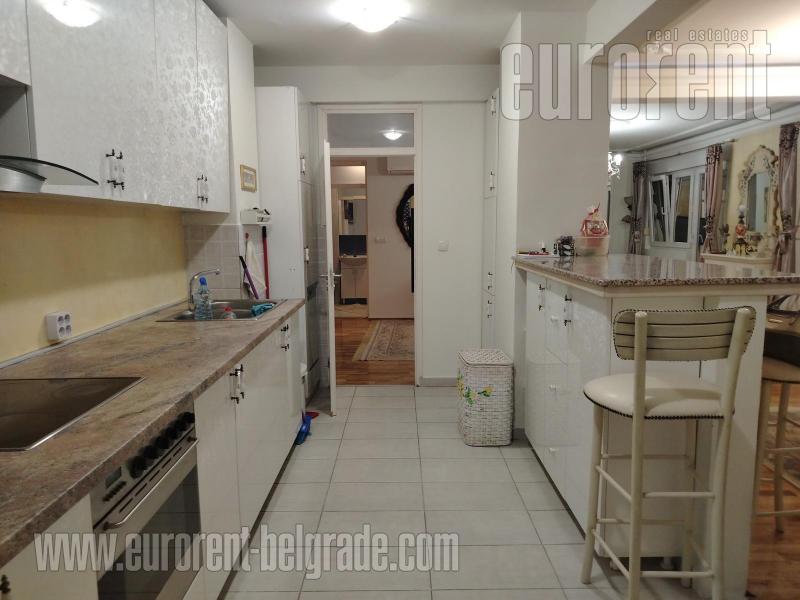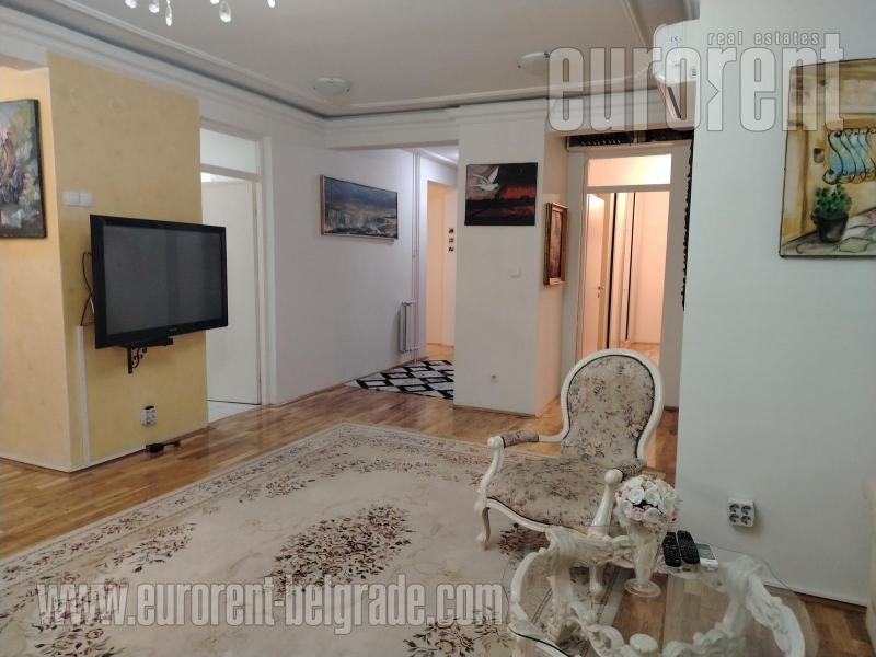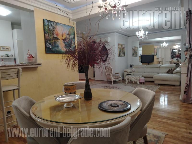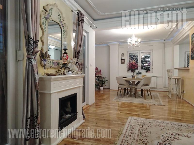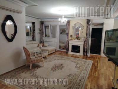 Odličan stan smešten na drugom spratu zgrade novije gradnje, sa liftom. Ulica je prometna ali je stan okrenut ka mirnoj strani. Vrlo komforan i udoban prostor. poseduje veliki dnevni boravak koji izlazi na prostranu terasu okrenutu ka zelenilu. U okviru dnevnog boravka je trpezarija koja se nastavlja na vrlo komfornu kuhinju odvojenu šankom. Stan poseduje tri spavaće sobe i dva kupatila od kojih je jedno sa kadom a drugo sa tuš kabinom. Jedna od soba izlazi na manju terasu na kojoj je smeštena sauna. Stan je opremljen nameštajem visokog kavliteta, u pastelnim bojama. Dnevni boravak poseduje italijansku kožnu garnituru, veliki plazma TV, kamin na bioetanol. opremljen je sa dosta plakara i smeštajnog prostora. Veoma prostran, udoban i prijatan stan, pogodan za veću porodicu. U prizemlju zgrade, na raspolaganju je garažno mesto površine oko 15m2.